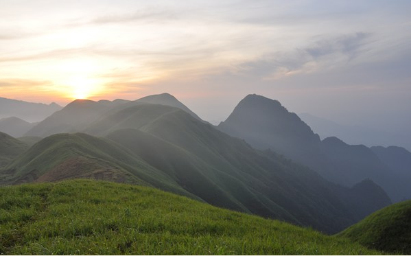 武功山的風(fēng)景很美,特別是云霧繚繞,陽光跳躍的時(shí)候。深淺不一的草甸,輕紗薄霧繚繞的山頭。